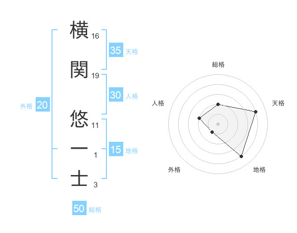 横関 悠一士さんの総格は50画の2点!