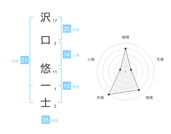 沢口 悠一士さんを姓名の画数から五運を鑑定