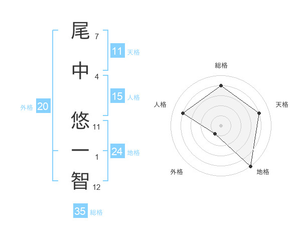 尾中 悠一智さんの地格は24画の5点!