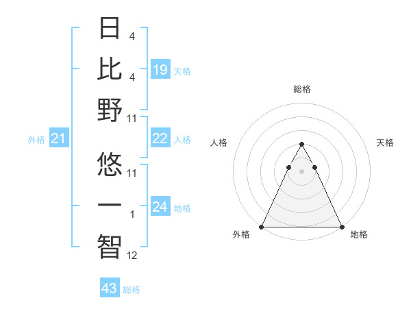 日比野 悠一智さんの総格は43画の2点!