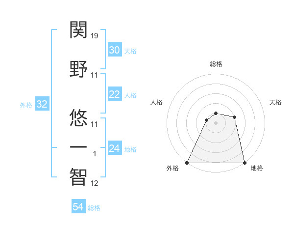 関野 悠一智さんを姓名の画数から五運を鑑定