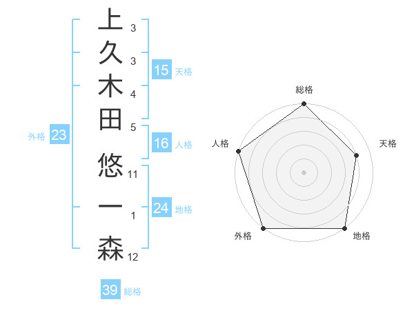 上久木田 悠一森さんを姓名の画数から五運を鑑定