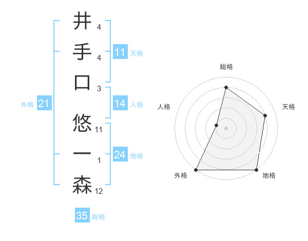 井手口 悠一森さんを姓名の画数から五運を鑑定