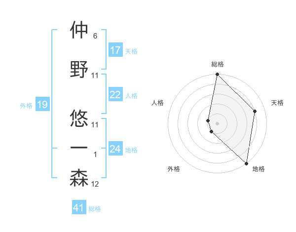 仲野 悠一森さんを姓名の画数から五運を鑑定