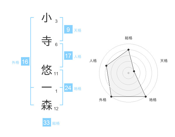 小寺 悠一森さんの地格は24画の5点!