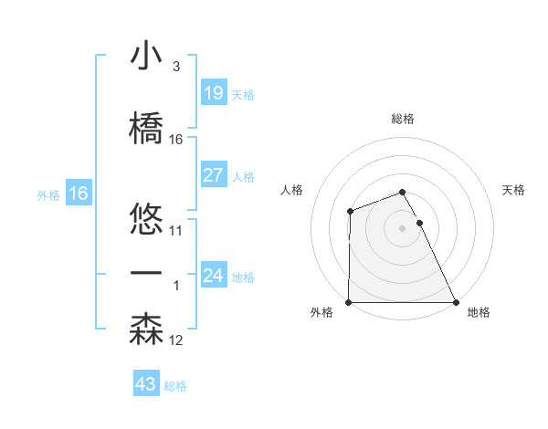 小橋 悠一森さんを姓名の画数から五運を鑑定