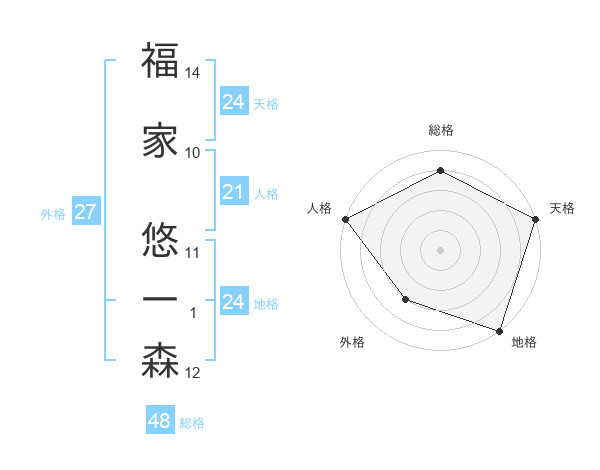 福家 悠一森さんの総格は48画の4点