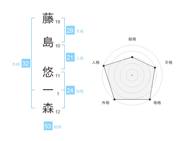 藤島 悠一森さんの総格は53画の3点!