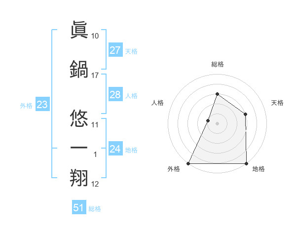 眞鍋 悠一翔さんを姓名の画数から五運を鑑定