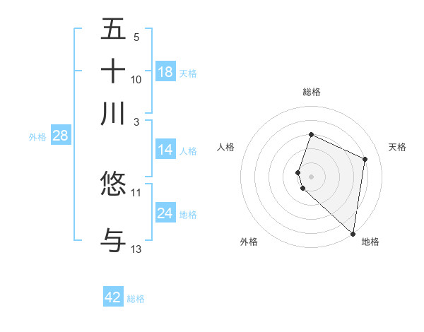 五十川 悠与さんを姓名の画数から五運を鑑定