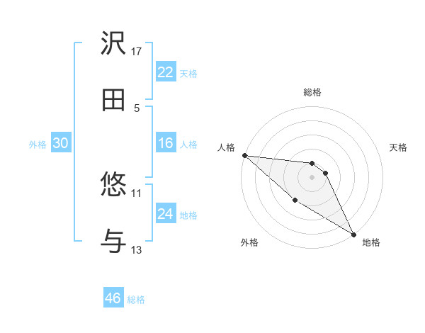 沢田 悠与さんを姓名の画数から五運を鑑定