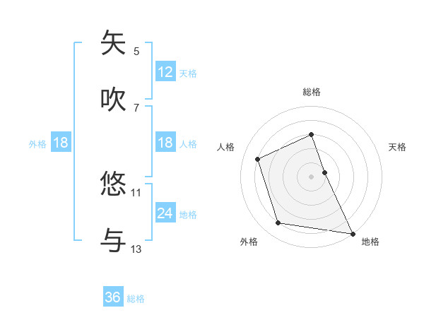 矢吹 悠与さんの総格は36画の3点!