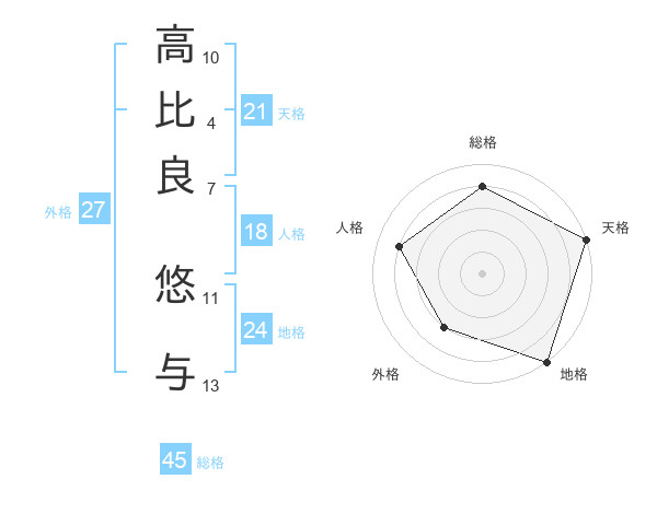 高比良 悠与さんの総格は45画の4点!