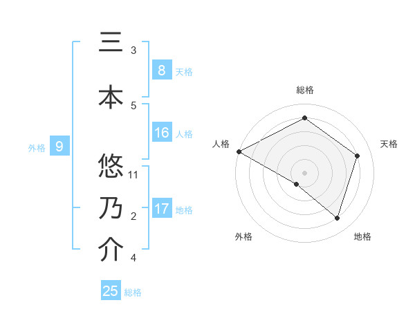 三本 悠乃介さんを姓名の画数から五運を鑑定
