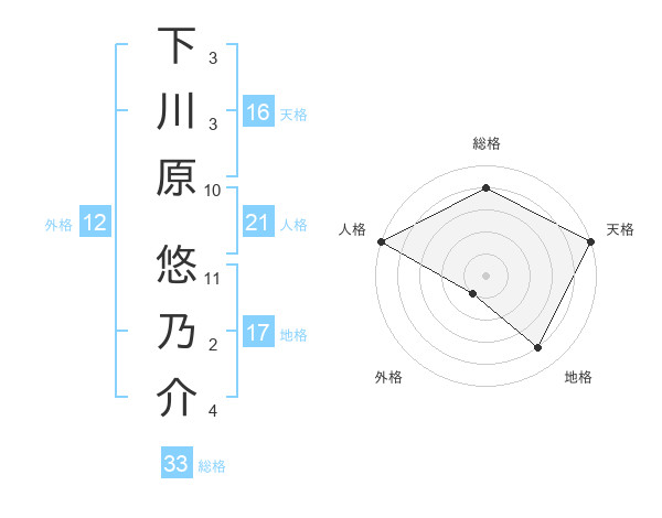 下川原 悠乃介さんを姓名の画数から五運を鑑定