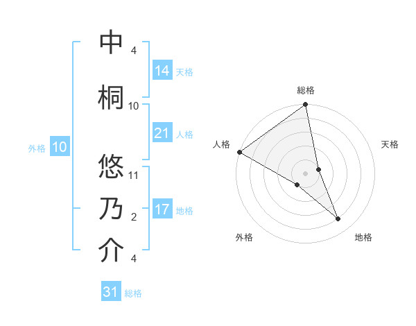 中桐 悠乃介さんの総格は31画の5点!