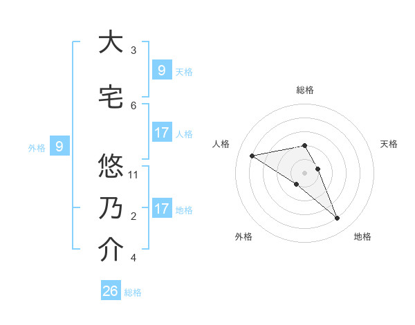 大宅 悠乃介さんを姓名の画数から五運を鑑定