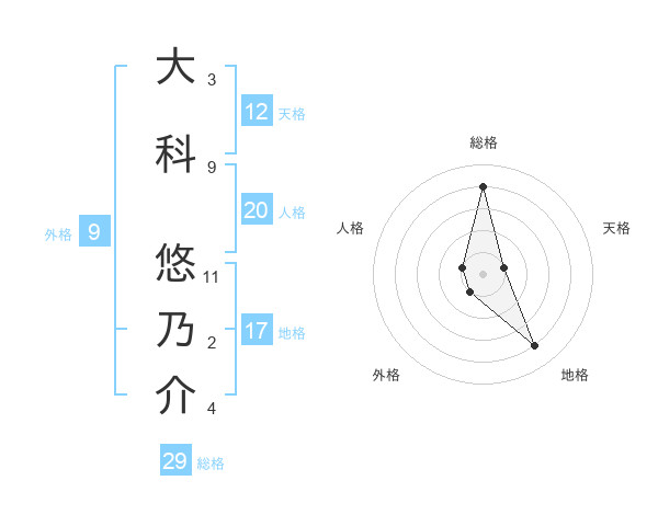 大科 悠乃介さんを姓名の画数から五運を鑑定
