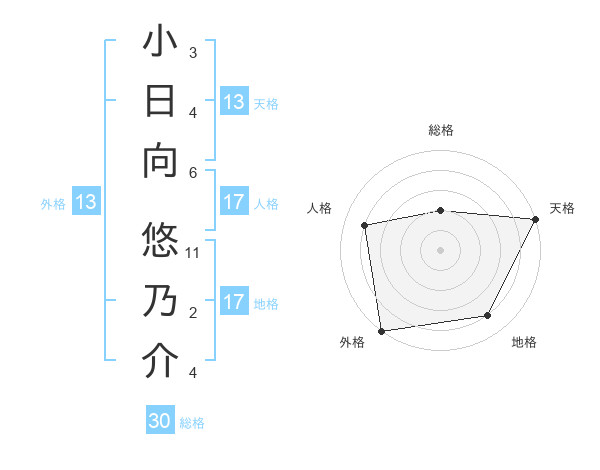 小日向 悠乃介さんを姓名の画数から五運を鑑定