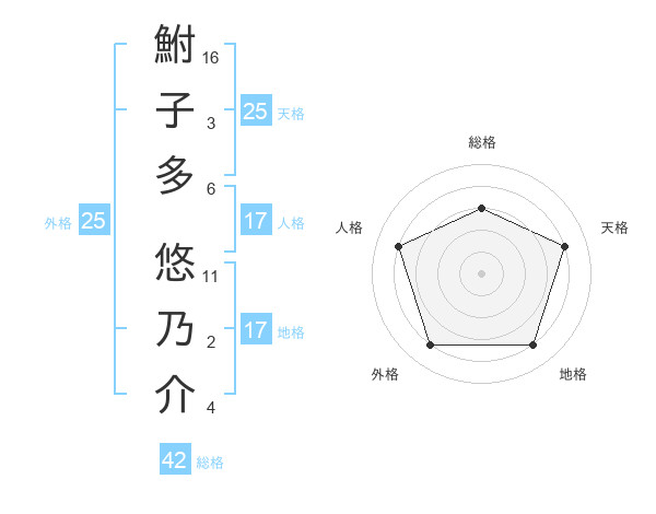 鮒子多 悠乃介さんを姓名の画数から五運を鑑定