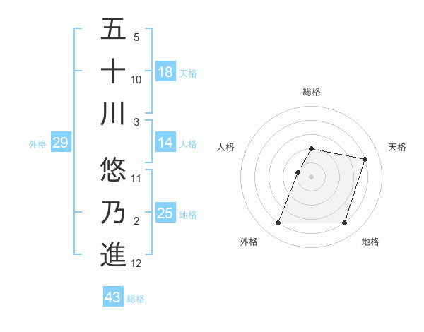 五十川 悠乃進さんを姓名の画数から五運を鑑定
