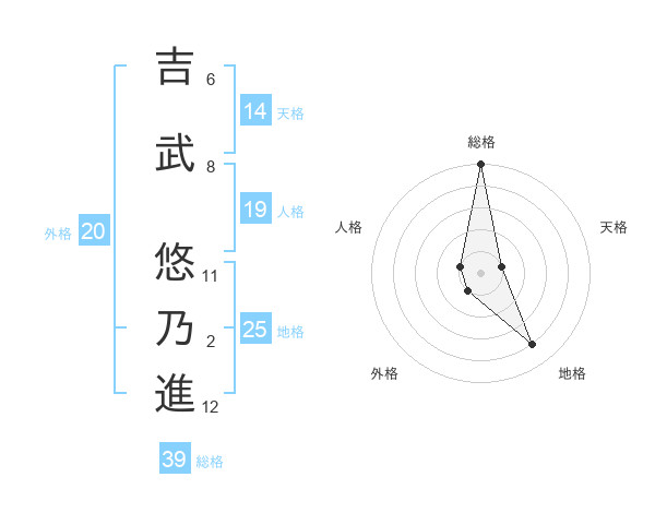 吉武 悠乃進さんを姓名の画数から五運を鑑定