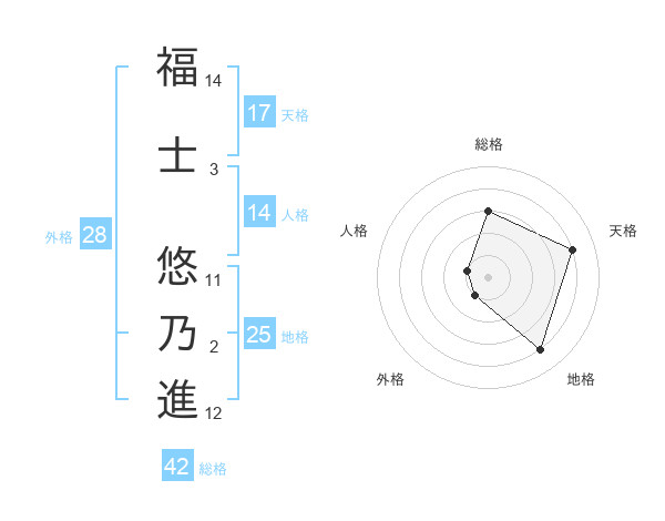 福士 悠乃進さんを姓名の画数から五運を鑑定