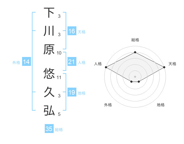 下川原 悠久弘さんを姓名の画数から五運を鑑定