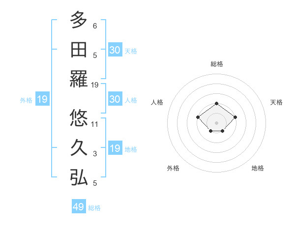 多田羅 悠久弘さんを姓名の画数から五運を鑑定