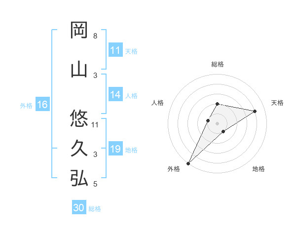 岡山 悠久弘さんの総格は30画の2点!