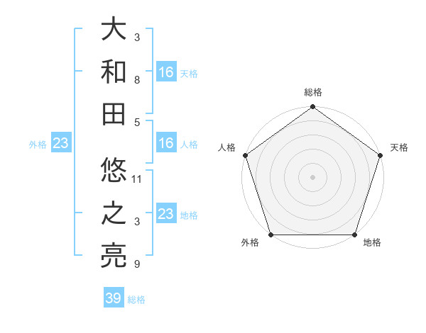 大和田 悠之亮さんを姓名の画数から五運を鑑定