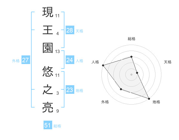 現王園 悠之亮さんを姓名の画数から五運を鑑定