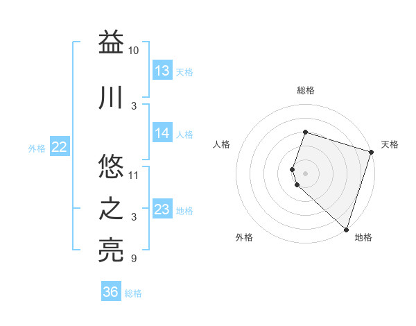 益川 悠之亮さんの天格は13画の5点!