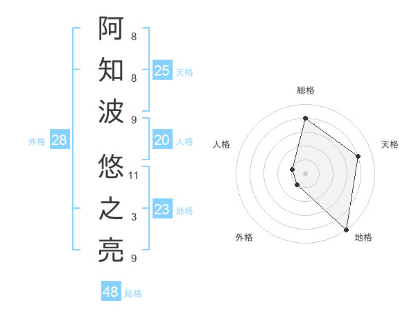 阿知波 悠之亮さんの総格は48画の4点!