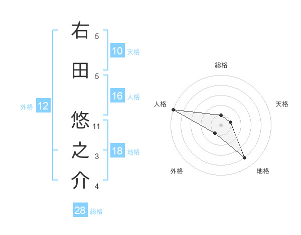 右田 悠之介さんを姓名の画数から五運を鑑定