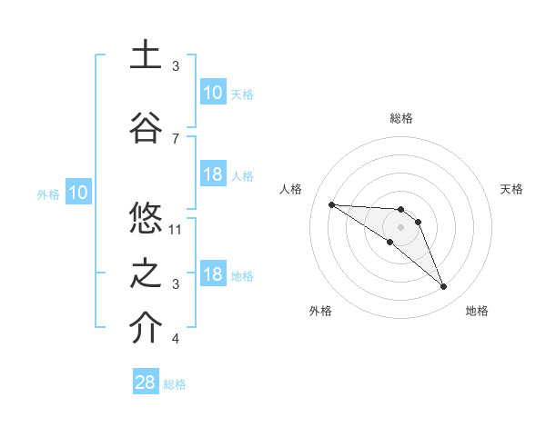 土谷 悠之介さんを姓名の画数から五運を鑑定