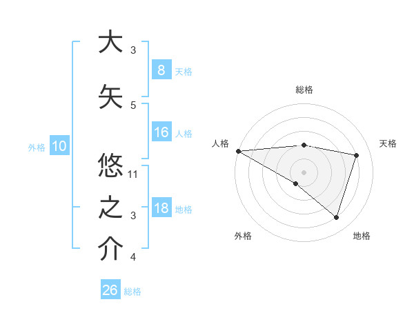 大矢 悠之介さんを姓名の画数から五運を鑑定