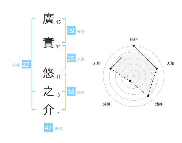 廣實 悠之介さんの総格は47画の5点!