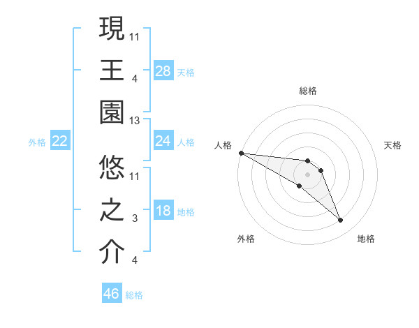現王園 悠之介さんの総格は46画の1点!