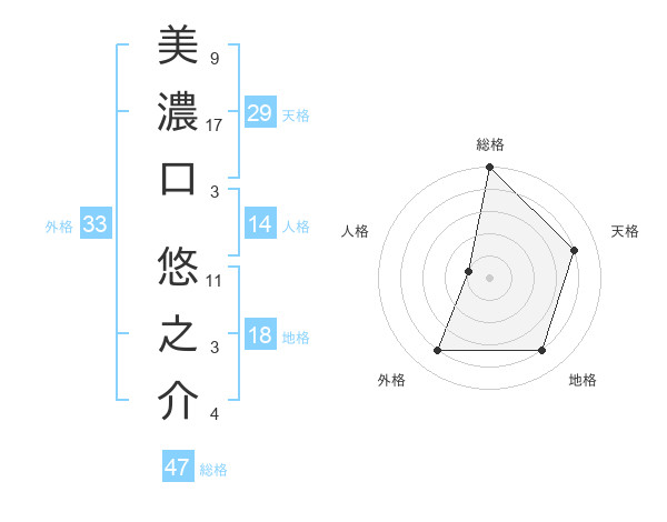 美濃口 悠之介さんを姓名の画数から五運を鑑定