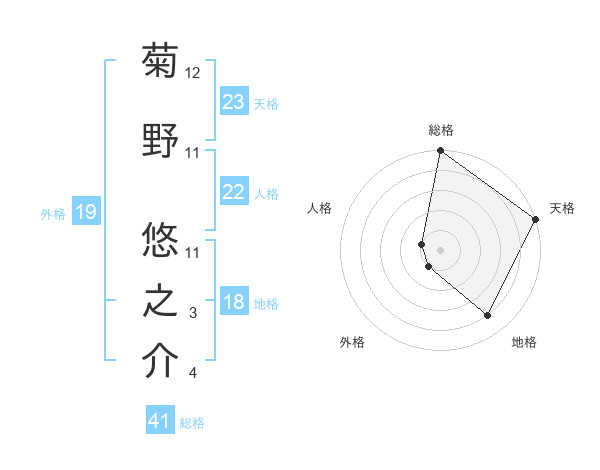 菊野 悠之介さんの天格は23画の5点!