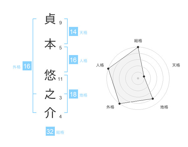 貞本 悠之介さんの総格は32画の5点!