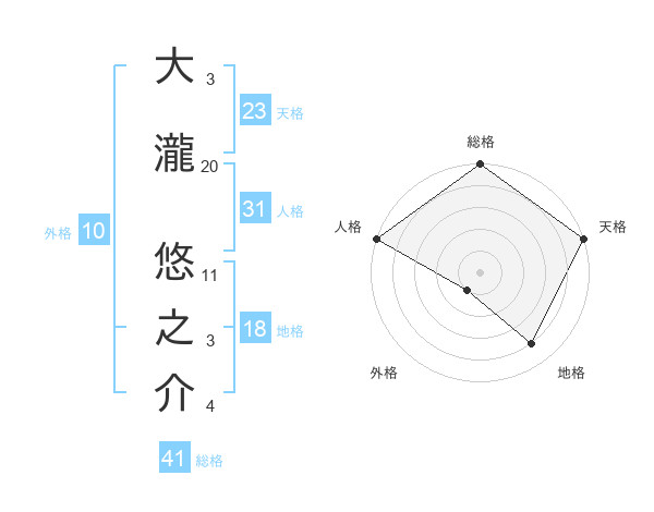 大瀧 悠之介さんを姓名の画数から五運を鑑定