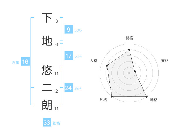 下地 悠二朗さんを姓名の画数から五運を鑑定