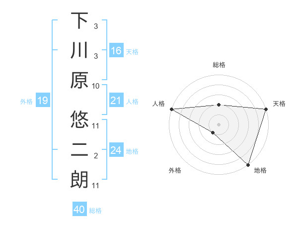 下川原 悠二朗さんを姓名の画数から五運を鑑定