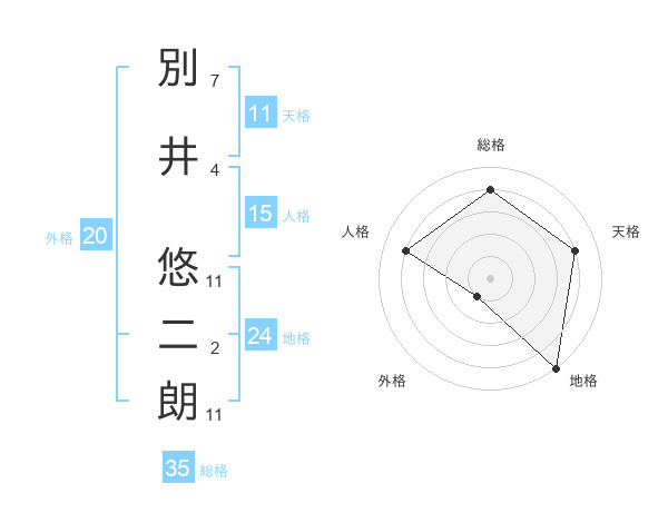 別井 悠二朗さんの総格は35画の4点!