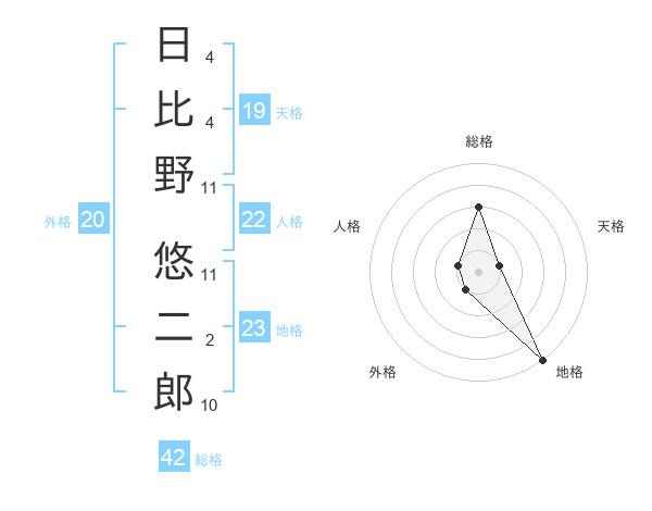 日比野 悠二郎さんを姓名の画数から五運を鑑定