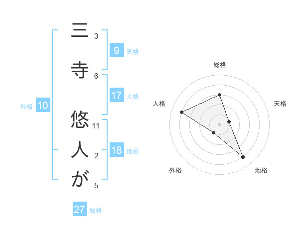 三寺 悠人がさんの総格は27画の3点!