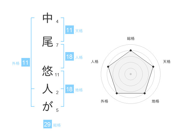 中尾 悠人がさんの天格は11画の4点!