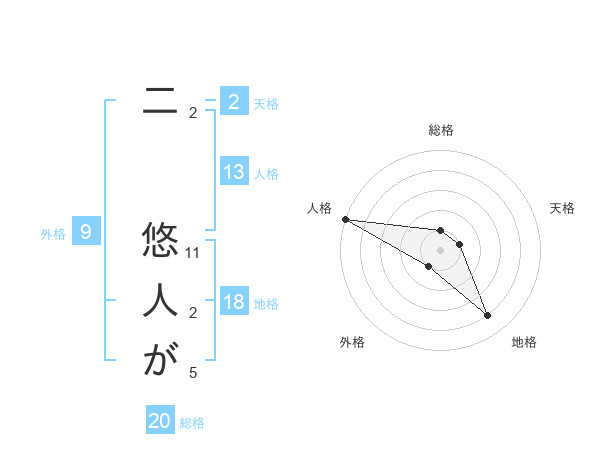 二 悠人がさんの総格は20画の1点!